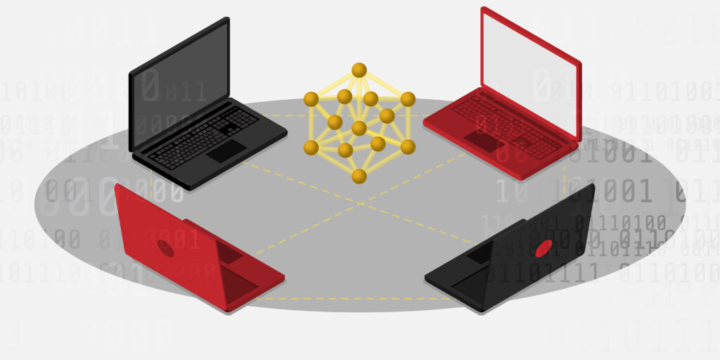 Peer-to-Peer is a type of network where participants communicate directly with each other rather than through a centralized server. The Bitcoin network is a peer-to-peer network.