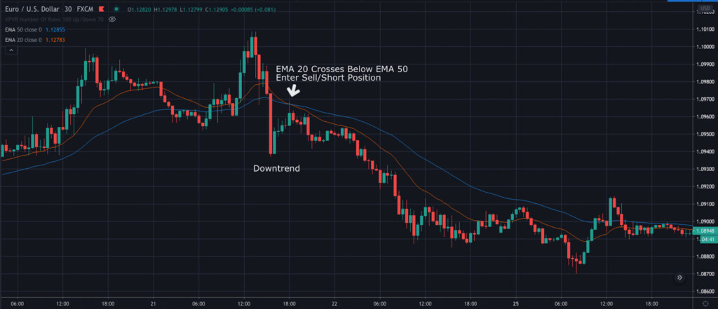 A shorter time frame is a good choice for first-time day traders. First-time swing traders should consider a more prolonged time frame when trading the EMA crossover. Whenever the 20-period line crosses over the 50-period line, it creates your best chance to go long.