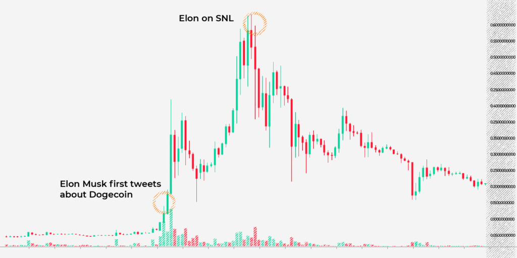 एलोन मस्क की बड़ी घोषणा के बाद कीमतों में बढ़ोतरी दिखाने वाला चार्ट