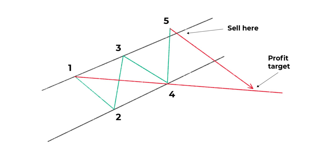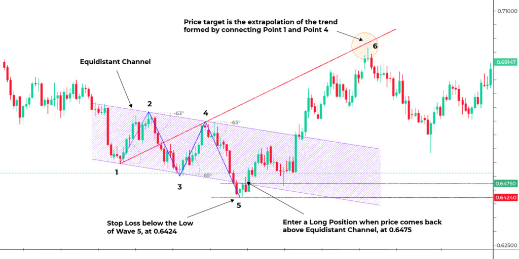 4. वेव 5 (अंतिम लहर) को एक झूठे या छद्म ब्रेकआउट का प्रतिनिधित्व करने वाले चैनल को तोड़ना चाहिए जो बाद में चैनल के भीतर समाप्त होता है।