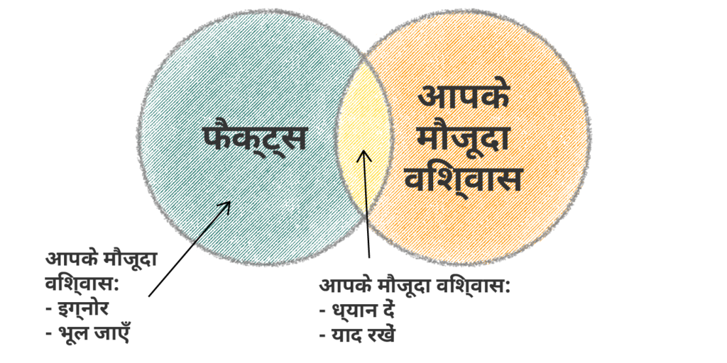 उदाहरण के लिए, मान लीजिए कि आपने एक स्टॉक पर एक बड़ी स्थिति खोली है। यदि विशेषज्ञ, विश्लेषण और टिप्पणियां किसी भी तरह से आपके वें अंग से भिन्न होती हैं, तो आप उन्हें बदनाम, फ़िल्टर या बस अनदेखा कर देंगे। इस जाल से बचने के लिए, आपको विभिन्न राय को देखने और नई जानकारी के प्रकाश में अपने निर्णयों पर पुनर्विचार करने की आवश्यकता है।