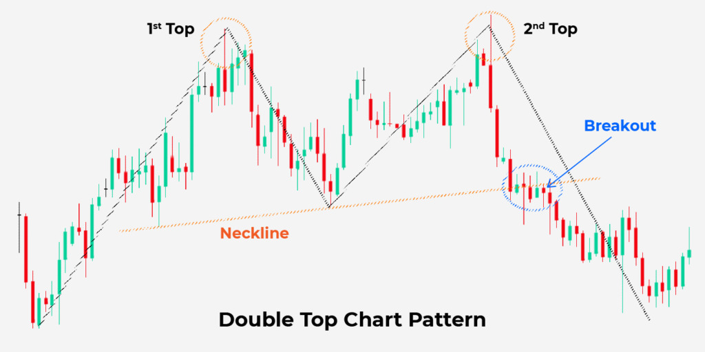 Pola double-top adalah salah satu strategi aksi harga Forex yang paling populer. Pola ini muncul di akhir tren bullish dan memprediksi pembalikan harga. Harga harus membentuk dua puncak. Keduanya tidak harus sama, tetapi perbedaannya tidak boleh signifikan.