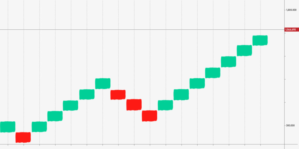 Jika grafik Rekno mempertahankan warna yang sama dalam sebuah tren maka pedagang harus memperdagangkannya. Namun jika berbalik arah maka itu mungkin merupakan sinyal keluar.