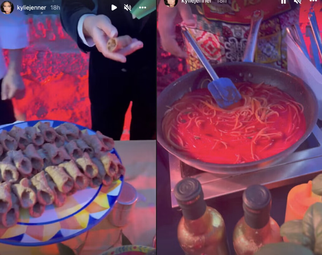 Menu resepsi menampilkan pasta trofie dengan pesto, kentang, dan kacang-kacangan, hidangan beraroma dan lezat yang menonjolkan keserbagunaan bahan-bahan vegan. Sesendok antusias Kourtney dari wajan menunjukkan kenikmatan kombinasi tersebut. Selain pasta, menunya termasuk “ikan” yang dipanggang dalam oven dengan kentang dan zaitun. Namun, hidangan ini disiapkan menggunakan bahan pengganti vegan untuk menciptakan rasa dan tekstur yang sama seperti ikan bass tradisional, memastikan seluruh menu tetap berbahan dasar nabati.
