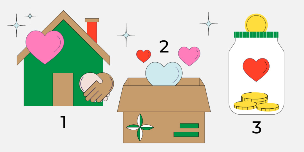 • Doação de dinheiro, mas certifique-se antes se você está bem preparado financeiramente e em dia com suas finanças pessoais.