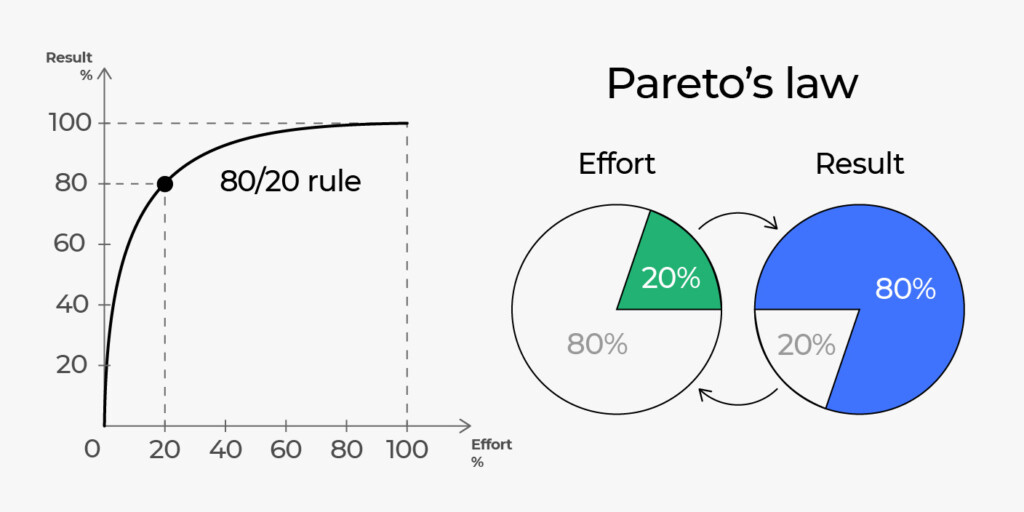 Um painel mostrando o princípio 80/20 em relação ao esforço e resultado