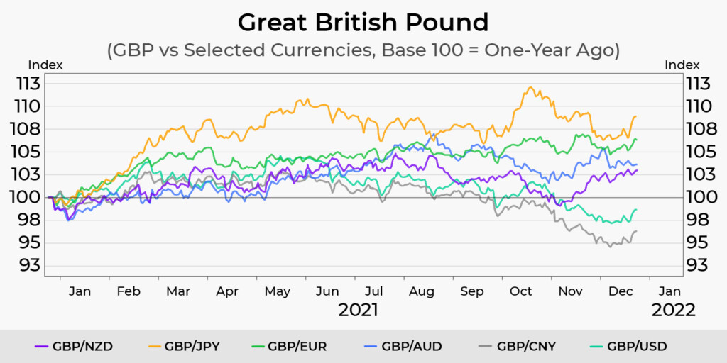 Gráfico mostrando o efeito da taxa de juros na GBP versus moedas selecionadas