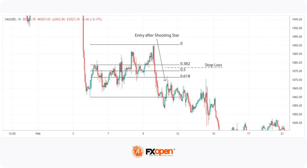 As the price nears the 38.2%, 50%, or 61.8% levels, you’re on the lookout for signals of a potential reversal. This is where candlestick patterns like the hammer and shooting star come into play — simple yet effective tools for spotting changes in direction. Once the candle has closed, confirming the pattern, it’s a potential entry point.