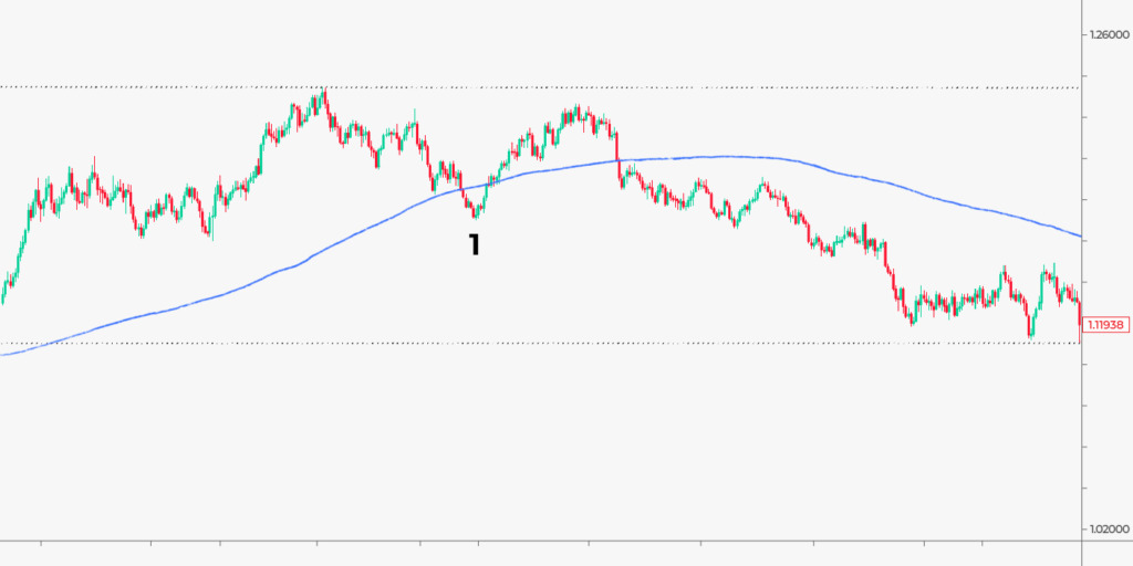 Although the price may return to the current trend, as in the picture above (1), you can expect a trend change as soon as the price interacts with the SMA.