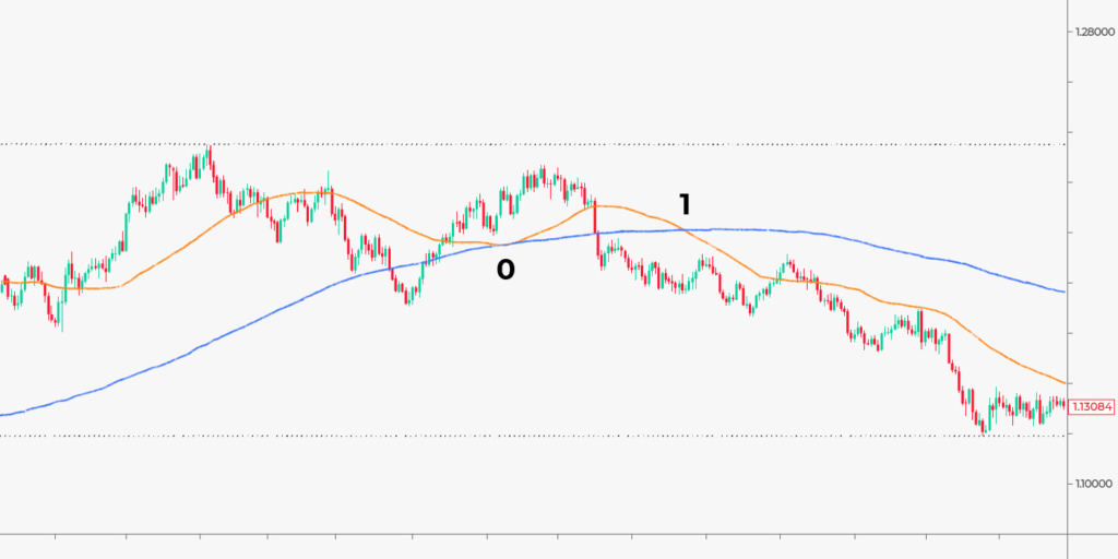 The chart below shows that when the 50-day MA fell below the 200-day MA (1), the bearish trend came into force. There could be a death cross earlier (0), but the 50-day MA didn’t fall below the 200-day MA.
